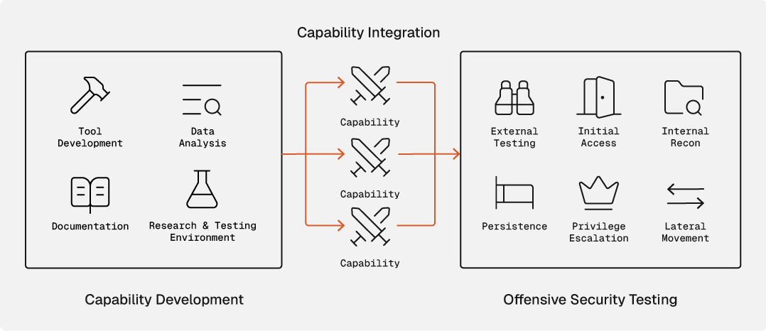 The offensive security landscape is evolving rapidly. A new offensive capability that took weeks of development, research and testing can now be accomplished in days or even hours. Creating new capabilities is more widely approachable now across various skillsets and experience due to the advancement and availability of Large Language Models (LLMs). Threat actors are realizing this too, as shown in a recent Anthropic Threat Report. For offensive security practitioners looking to improve their capabilities in the most efficient manner, LLMs represent a paradigm shift in how to approach capability development and improvement. These LLMs are force multipliers for offensive security, such as Anthropic's Claude for coding tools, OpenAI's GPT 5 as a research assistant, reporting assistant or phishing email author, and Google's Gemini for orchestrating multi-agent workflows or analyzing and correlating large amounts of data. This blog post covers how LLMs can enhance the capability development process, and contains examples of capabilities that our team has built and fielded on offensive security engagements for our clients.