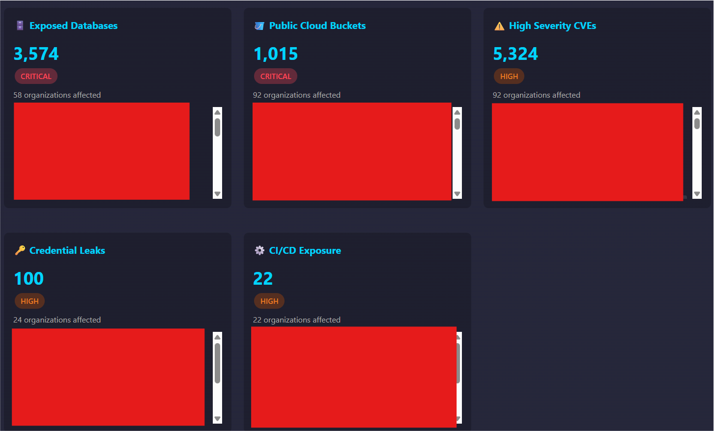 * Public Code Repositories and Public Storage Buckets (e.g., finding