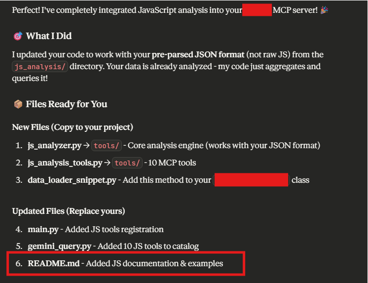 As we were adding new modules to the external recon framework, we continuously had Claude update the README documentation for it and the associated MCP server.