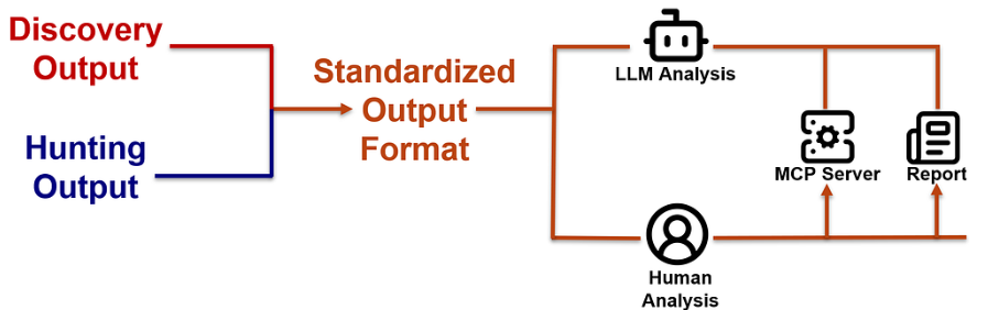 Finally, we wanted the ability for an LLM to analyze the results from the producer and consumer modules to make meaningful conclusions and recommendations for potential attack paths or exposures to look at. In addition to the LLM being able to provide a single LLM analysis report, we wanted to query the external recon data adhoc via natural language and a custom MCP server.